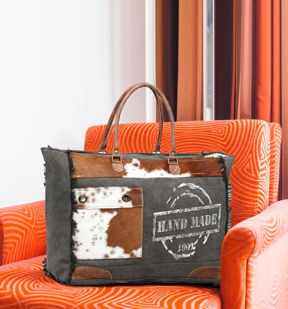 Rustic Handcrafted Canvas & Hairon Leather Tote – “Handmade Heritage Edition”