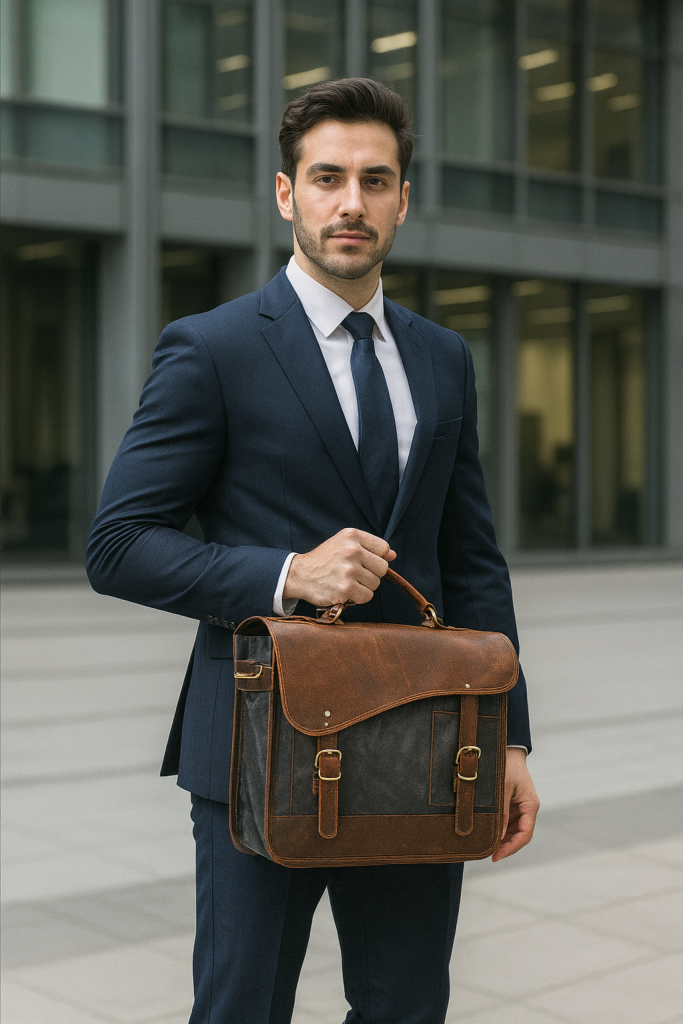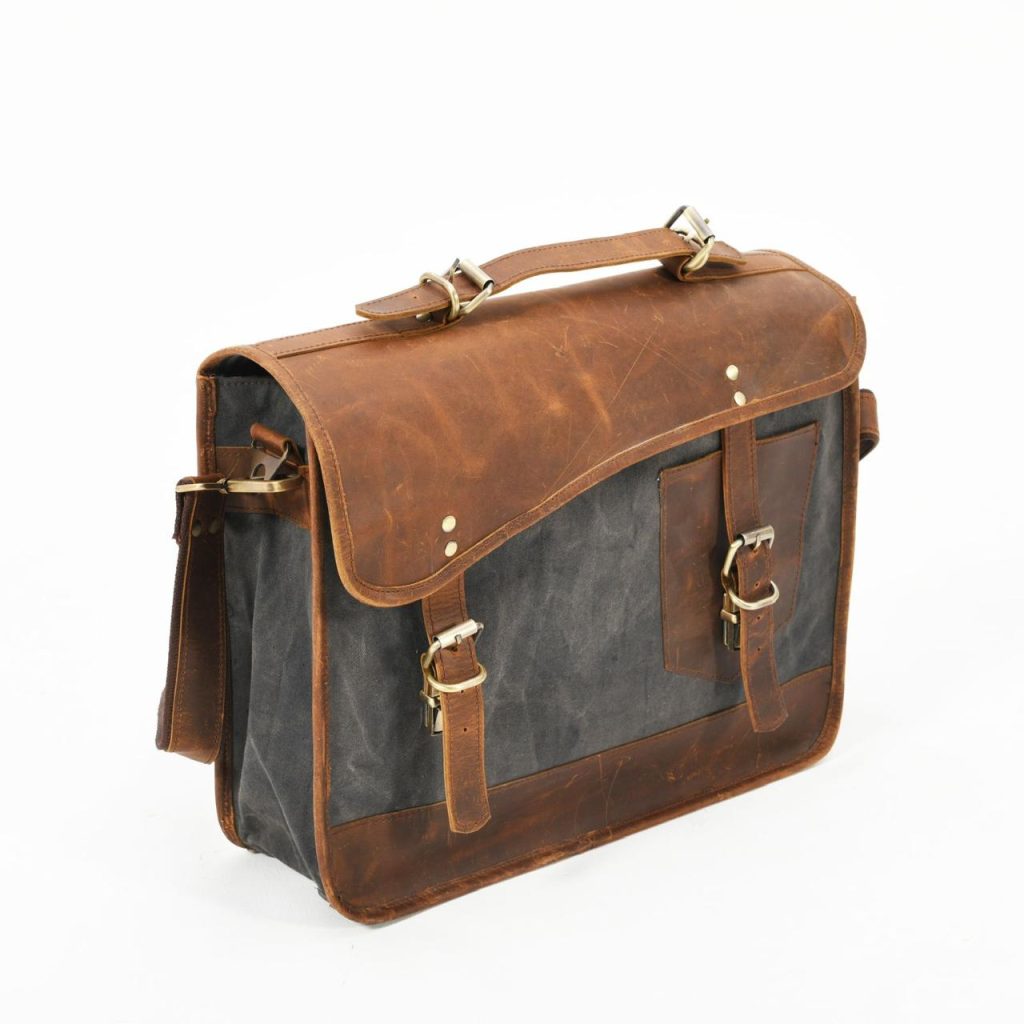 Heritage Canvas & Leather Laptop Messenger Bag – Handcrafted Vintage Edition