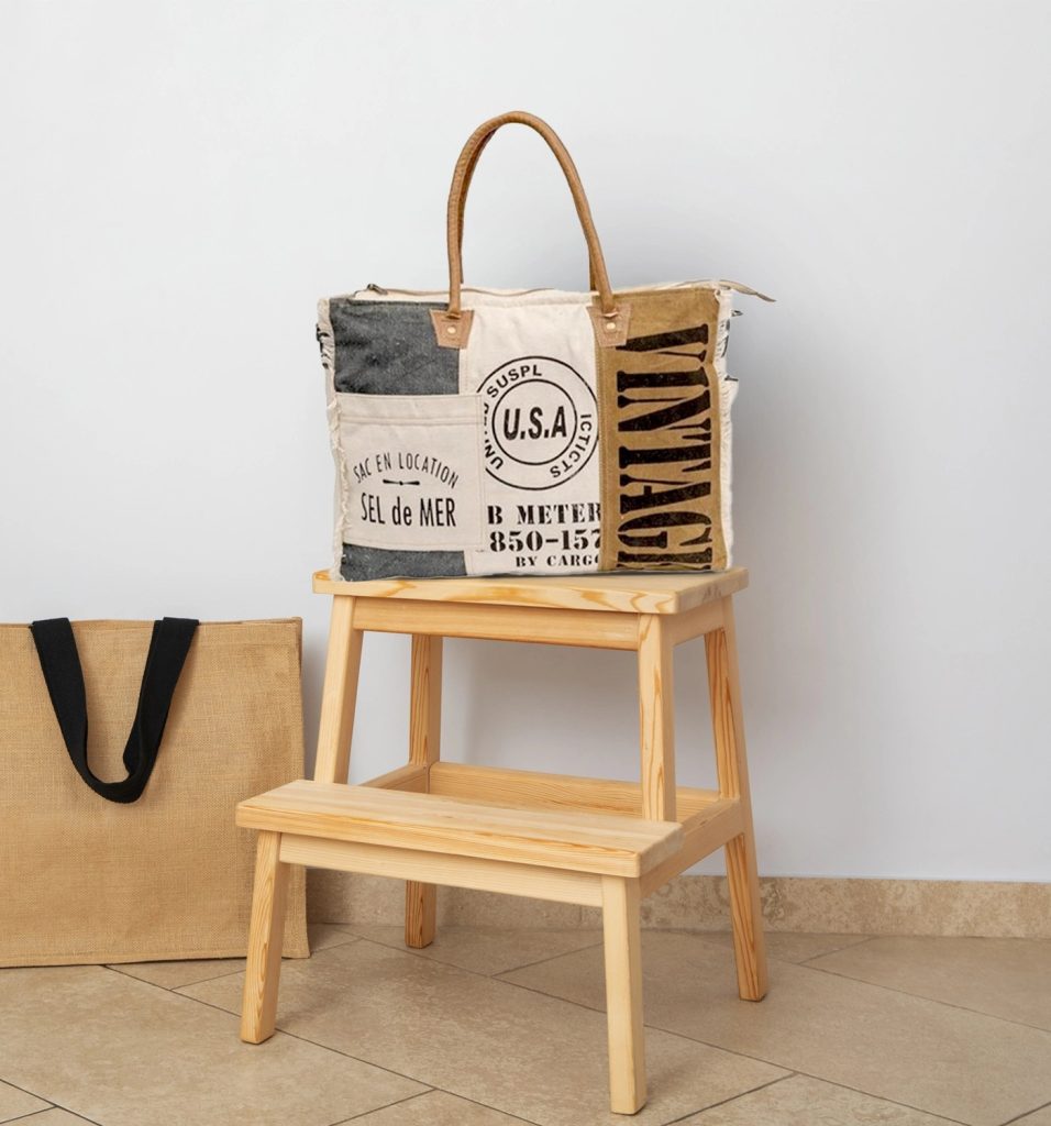METERIAL – 100% Cotton Canvas with Genuine Buff Leather Handles