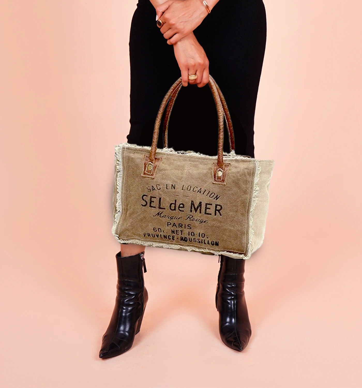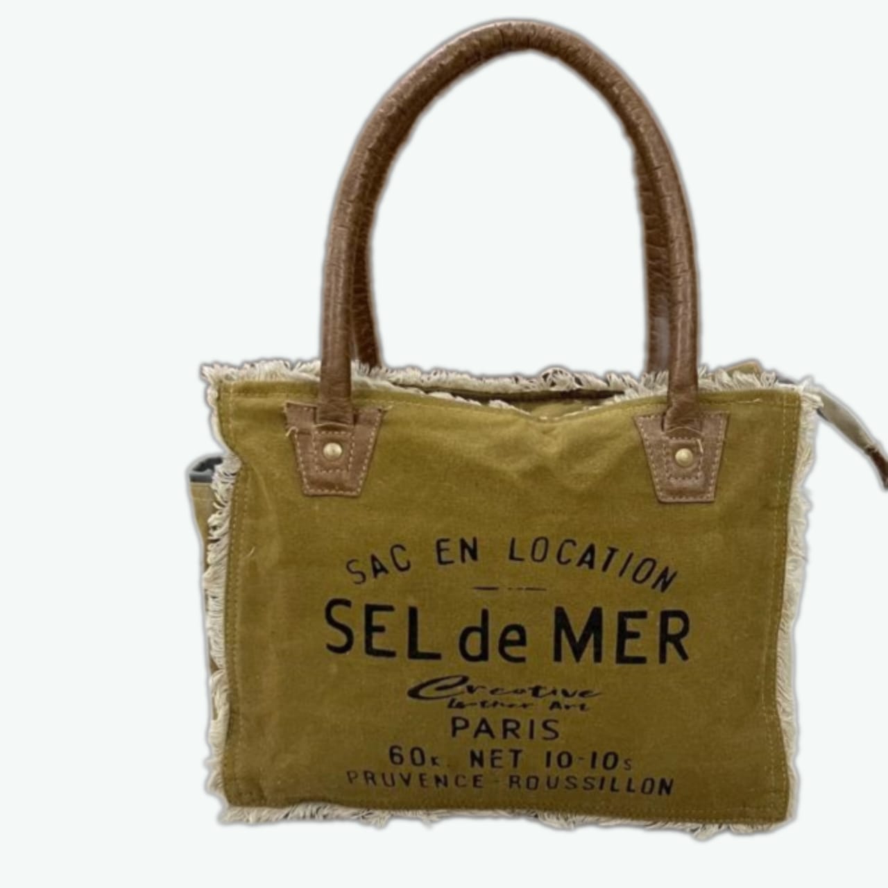 Bring a touch of Parisian charm to your everyday style with this SEL de MER vintage canvas tote bag, crafted from durable canvas and genuine leather handles. Its rustic finish and frayed edges make it a perfect mix of classic elegance and effortless utility.
