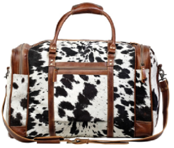 Make every journey a statement with this handcrafted Hairon leather duffle bag, designed from genuine cowhide in a striking black-and-white